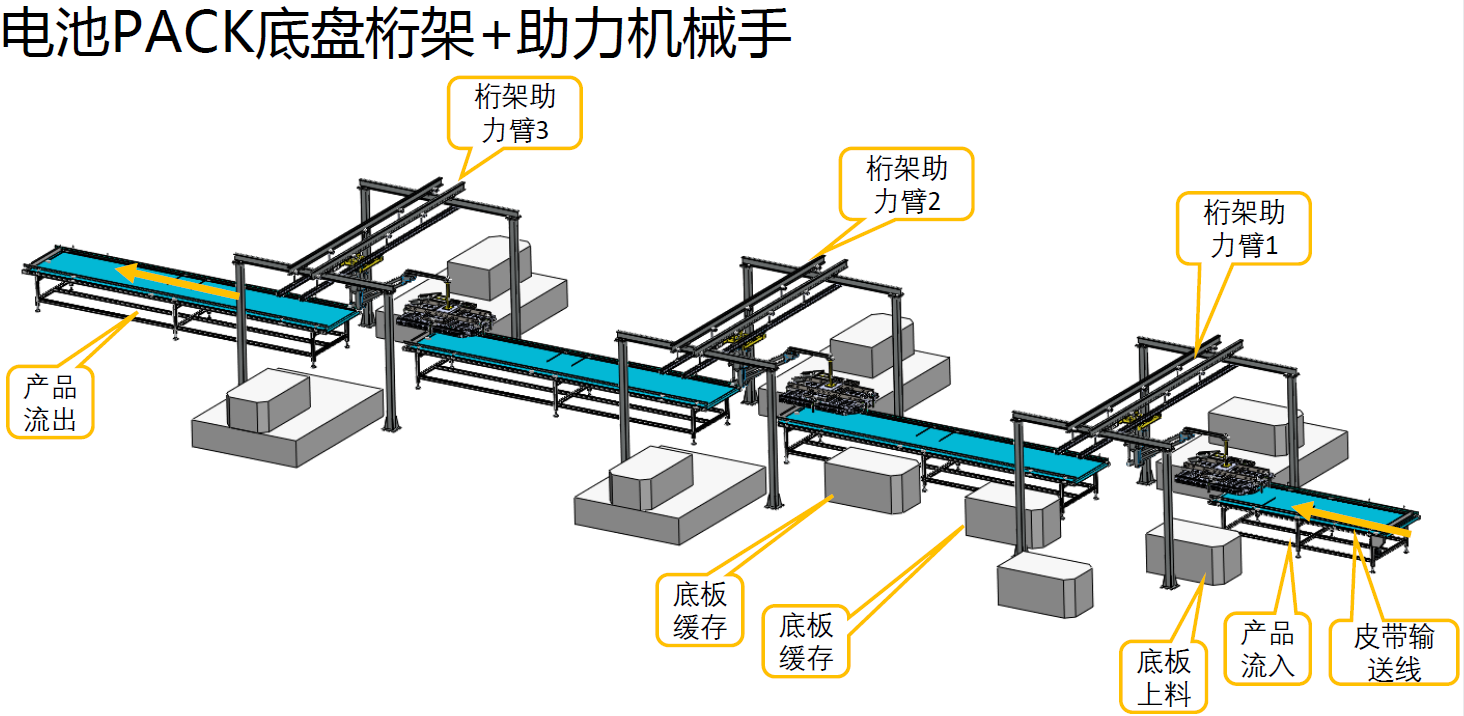 廣州卓鋒設(shè)計(jì)制作多套新能源電池PACK底盤搬運(yùn)設(shè)備,采用氣動(dòng)助力機(jī)械手+桁架KBK,解決了PACK底盤生產(chǎn)線中上下料問題,是成熟可靠,性價(jià)比最高的解決方案。